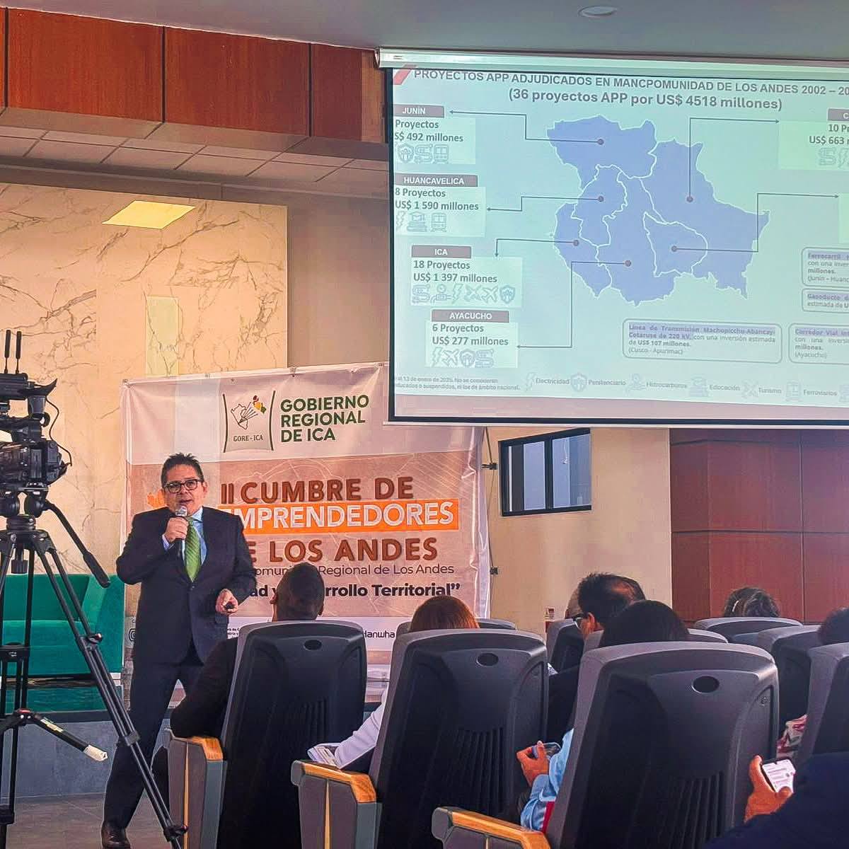 En representación del Gobierno Regional de Ayacucho, el director regional de la Producción, Ing. Otto Gonzáles Arones, junto al gerente regional de Desarrollo Económico, Jhony Barrientos Taco, y la directora regional de Comercio Exterior y Turismo, Cinthia Caballero Ruiz, participaron activamente en la II Cumbre de Emprendedores de los Andes, realizada en la región Ica.