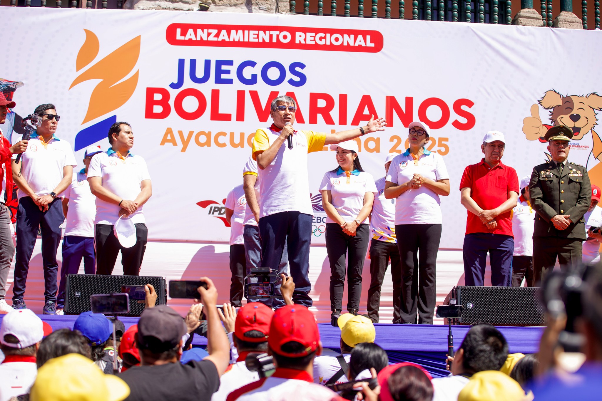 Con la presencia de destacadas autoridades regionales, deportivas y locales, se llevó a cabo el lanzamiento regional de los XX Juegos Bolivarianos Ayacucho – Lima 2025, en una ceremonia que contó con la participación del gobernador regional de Ayacucho, Wilfredo Oscorima Núñez, el presidente del Instituto Peruano del Deporte (IPD), Federico Tong, y miembros del comité organizador.